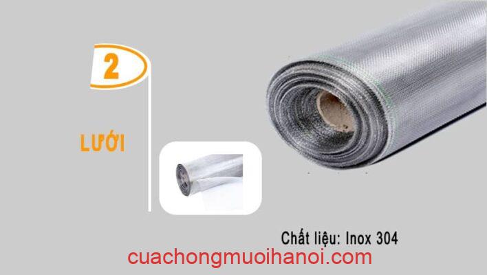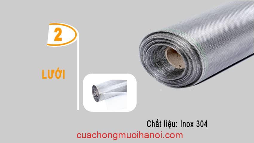 Lưới được tạo ra từ những sợi inox 304. Để tạo ra khung lưới với kích thước khác nhau phụ thuộc vào kích thước thực tế của khu vực cần lắp đặt cửa chống muỗi và côn trùng. Lưới chống muỗi inox chống chịu được môi trường, nhiệt độ và thời tiết khắc nghiệt của Việt Nam. Sản phẩm cửa chống muỗi cố định có thể được sử dụng tới 10 năm không phải bảo trì. Cửa lưới chống muỗi cố định nói riêng và các loại cửa chống muỗi nói chung, với thiết kế lưới tinh xảo giúp ngăn chặn mọi loại côn trùng và đảm bảo thẩm mỹ.